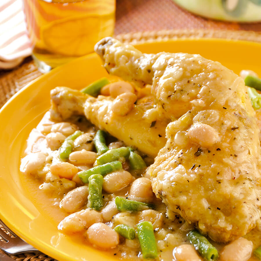 SALPIMIENTE el pollo y dórelo en el aceite. Resérvelo.